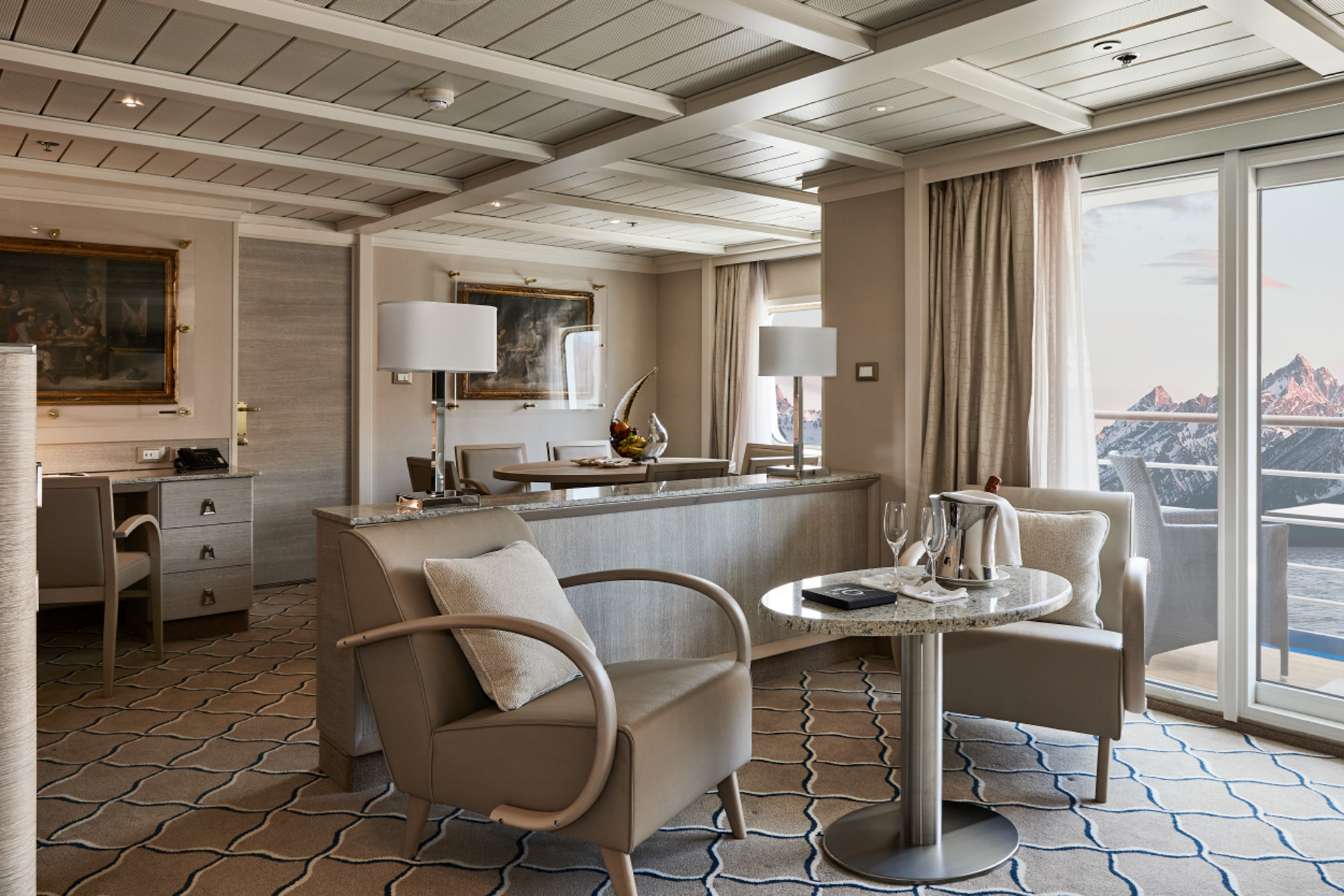 Num ambiente íntimo com um nível elevado de cuidado e atenção, a “experiência de iate” oferece em todas as suítes impressionantemente amplas, decoradas e completas com varanda com vista para o mar, um concierge pessoal para tratar de todos os detalhes e pormenores assim como, outras comodidades a bordo.
