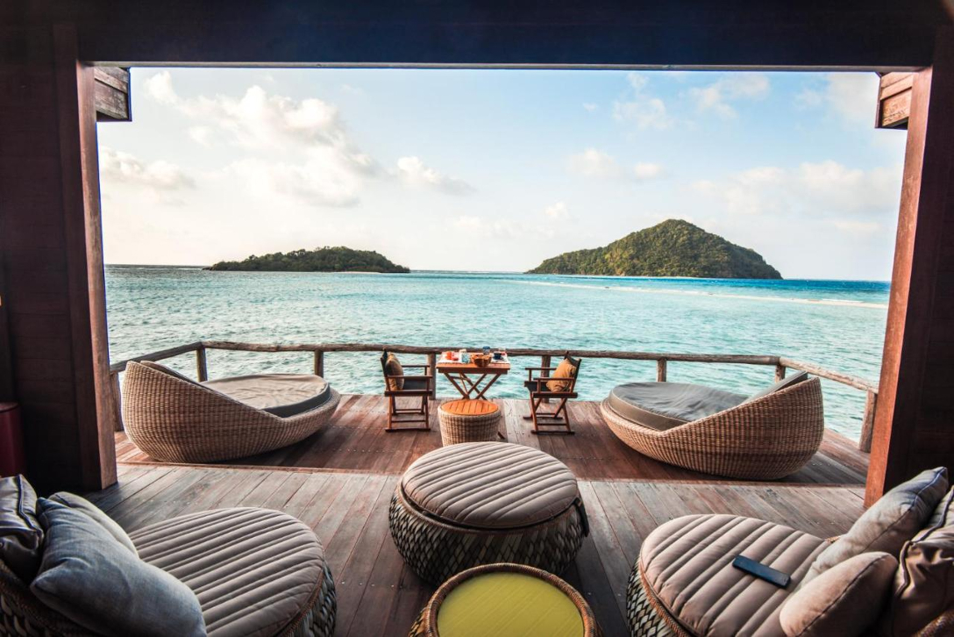 75 villas requintadas e gloriosamente pacíficas. As villas de praia de arenito e madeira são protegidas por grandes folhas de bananeira e palmeiras, enquanto as villas sobre o mar, têm um deck de madeira privativo para banhos de sol e degraus para mergulhar na lagoa. Existe um foco real no sob medida - além de refeições em restaurantes, as opções de refeições privativas disponíveis em qualquer local à sua escolha; pacotes de spa podem ser adaptados; o mergulho é 'por design'; e as experiências variam de aventura personalizada a puro romance.