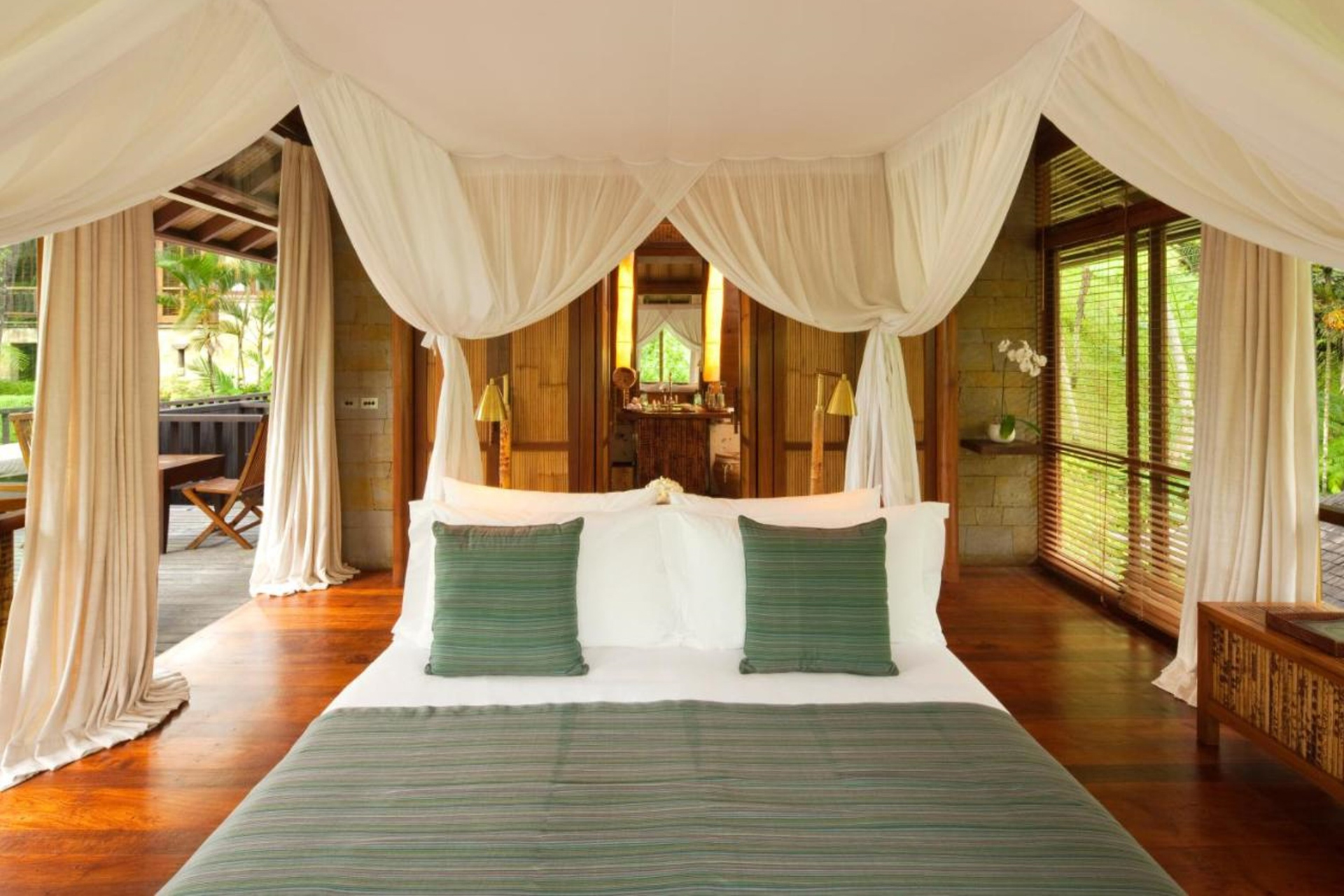 Este premiado resort de bem-estar perto de Ubud, Bali, está localizado na floresta entre dois rios caudalosos, com uma nascente que fornece a água mineral que corre na torneira das residências exclusivas inspiradas na natureza. Residências com várias suites e vilas independentes imersas na vida selvagem, com design inspirado na rica cultura da Indonésia.
