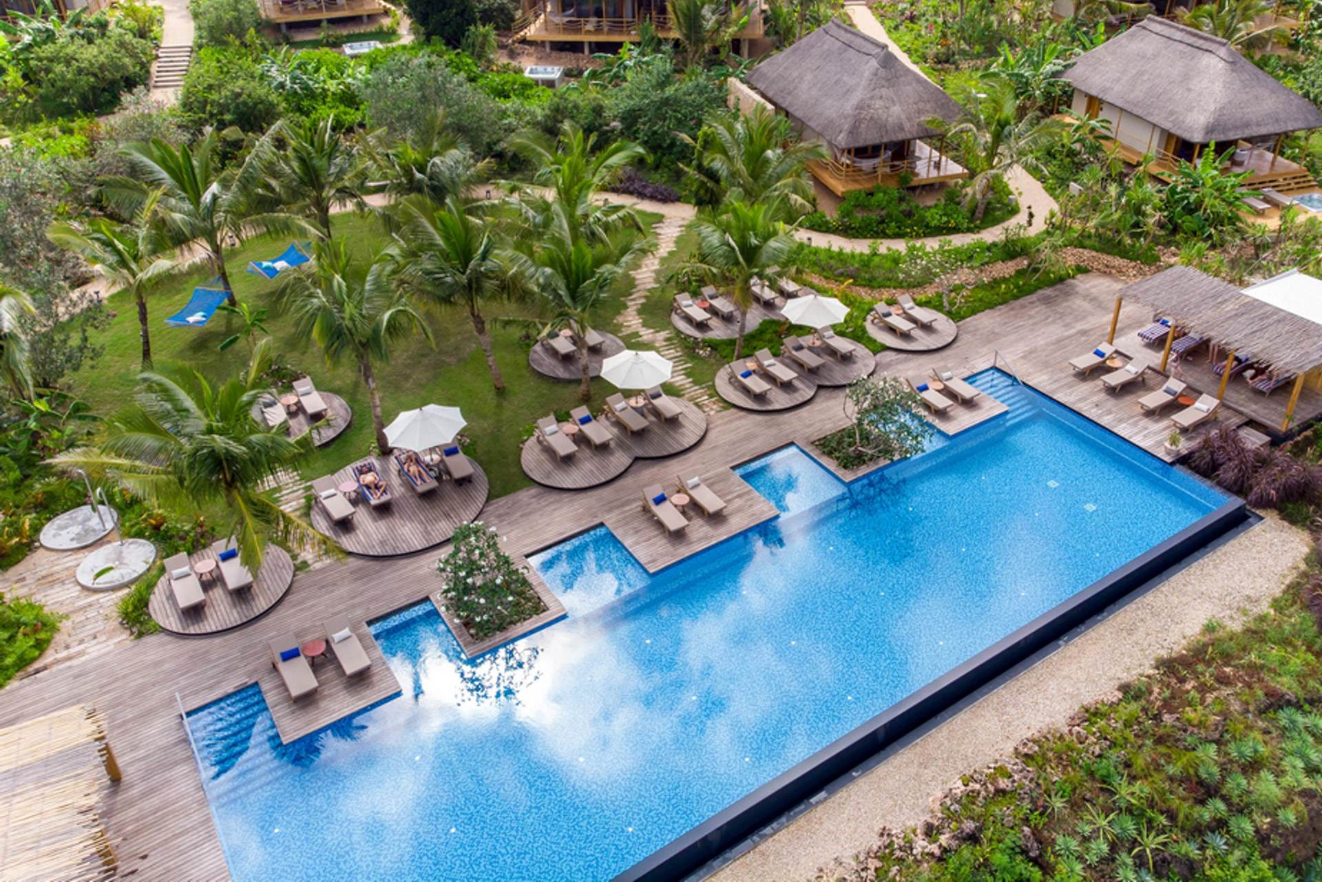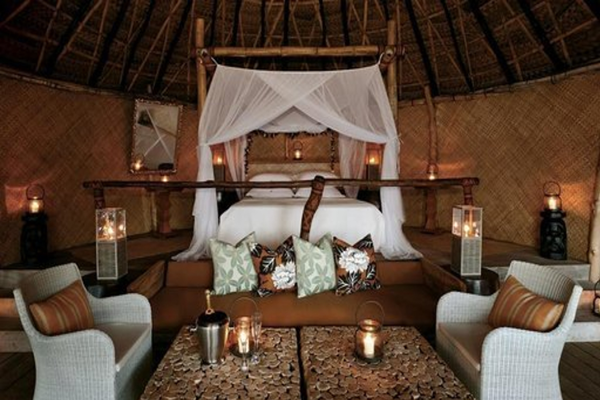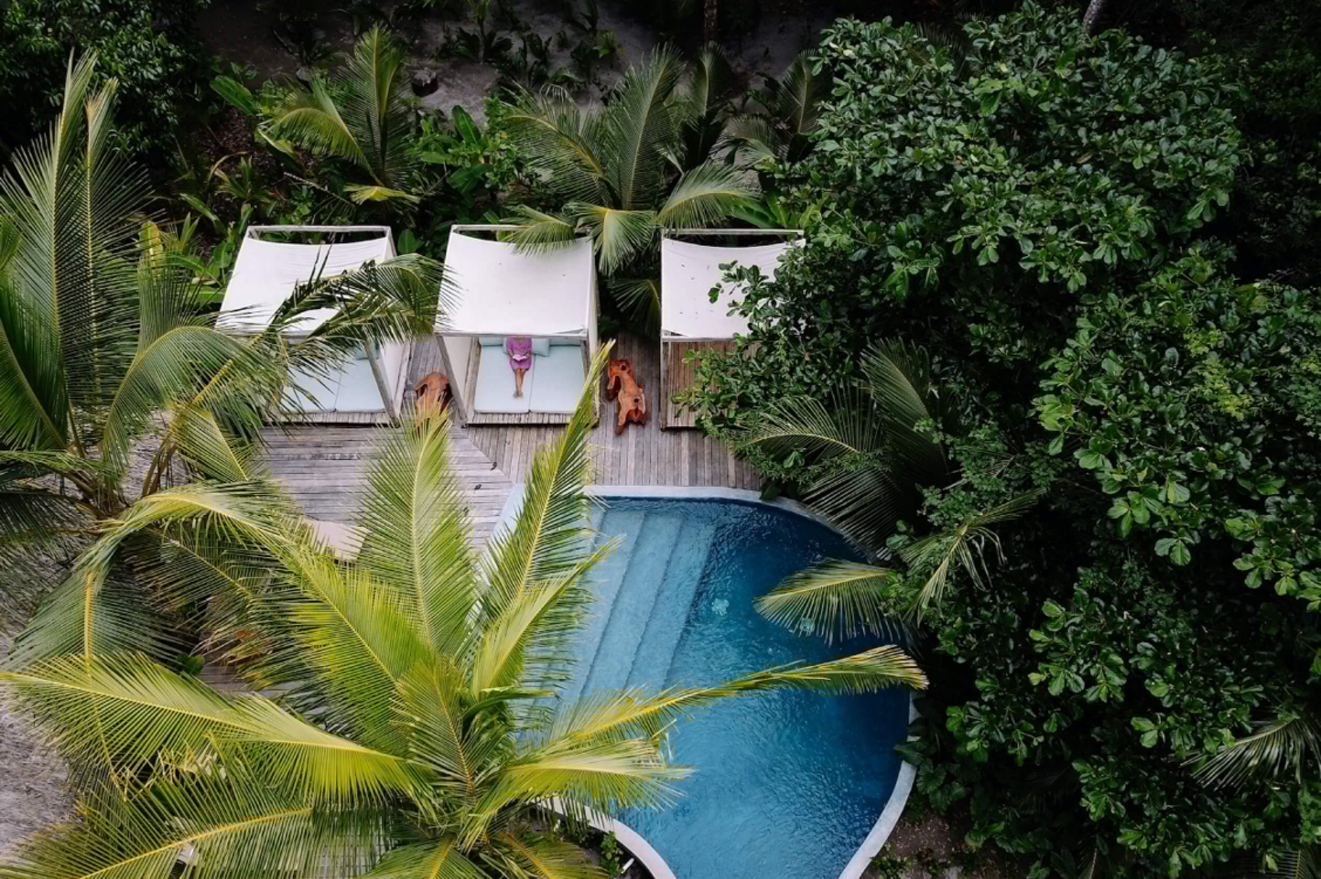 Seis ilhas intocadas, treze praias e três lagoas. As acomodações posicionadas em torno de grandes árvores, os telhados cobertos com folhas de palmeira extra grandes de uma ilha vizinha e parte da decoração sáo peças recuperadas ou reinventadas. O resultado é um resort que parece terroso e orgânico, mas também deslumbrante, depauperado e delicado.