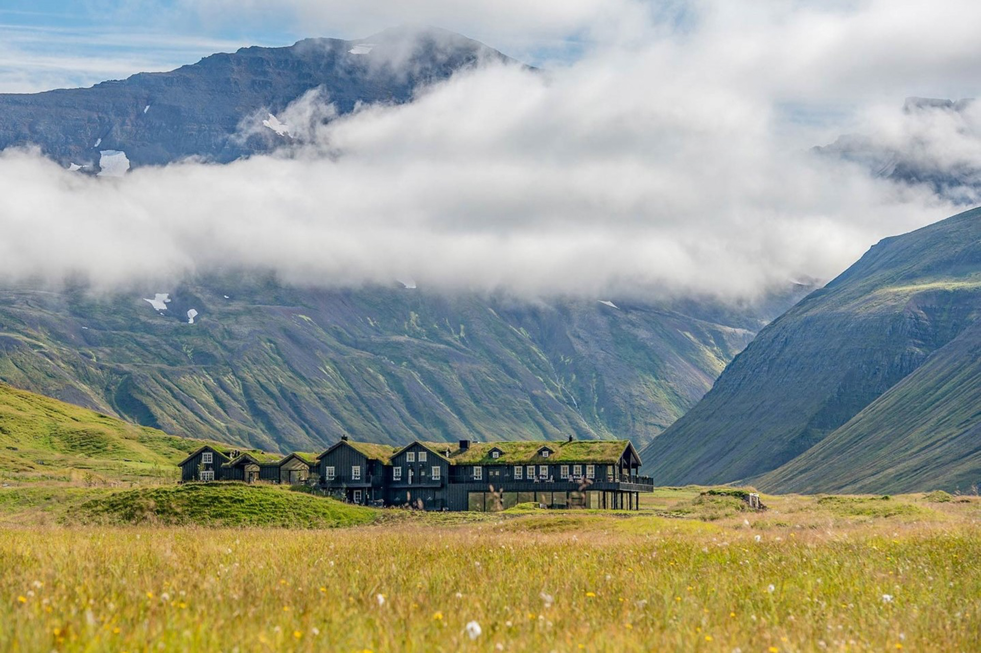 A luxuosa Deplar Farm com os seus telhados camuflados escondem suites aconchegantes, um elegante spa, restaurante e área de lazer, todos com vista para as montanhas de gelo ao redor e a extensa natureza selvagem da mágica Península de Troll. Todas as refeições estão incluídas e apresentam pratos como truta pescada localmente e char islandês. Algumas aventuras também são gratuitas: calce suas melhores botas – sejam elas de trekking, esqui ou passeios a cavalo – durante o dia, depois sacuda a neve e aconchegue-se perto do fogo, ou flutue na piscina ao ar livre (aquecida por energia geotérmica) sob o brilho dourado do sol da meia-noite ou - se você tiver sorte - o misterioso verde e roxo da aurora boreal.