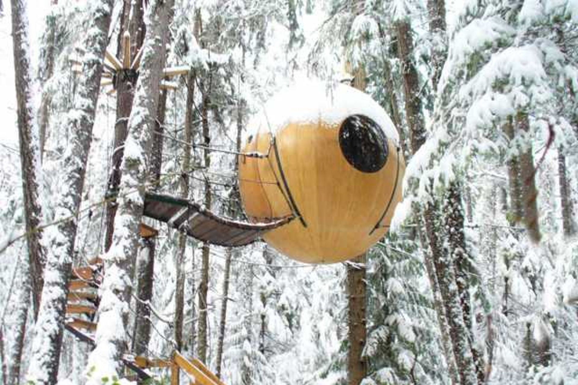 Dormir numa casa suspensa nas árvores por cordas, em perfeita harmonia com o ambiente.Uma experiência única que permite aos hóspedes estar em profundo contacto com a natureza com relativo luxo, ao mesmo tempo em que exala a grandiosidade e a grandeza da floresta tropical da costa oeste Canadiana. A criatividade, hospitalidade e conservação da floresta num ambiente exótico, onde encontrará a paz e o relaxamento que procura.