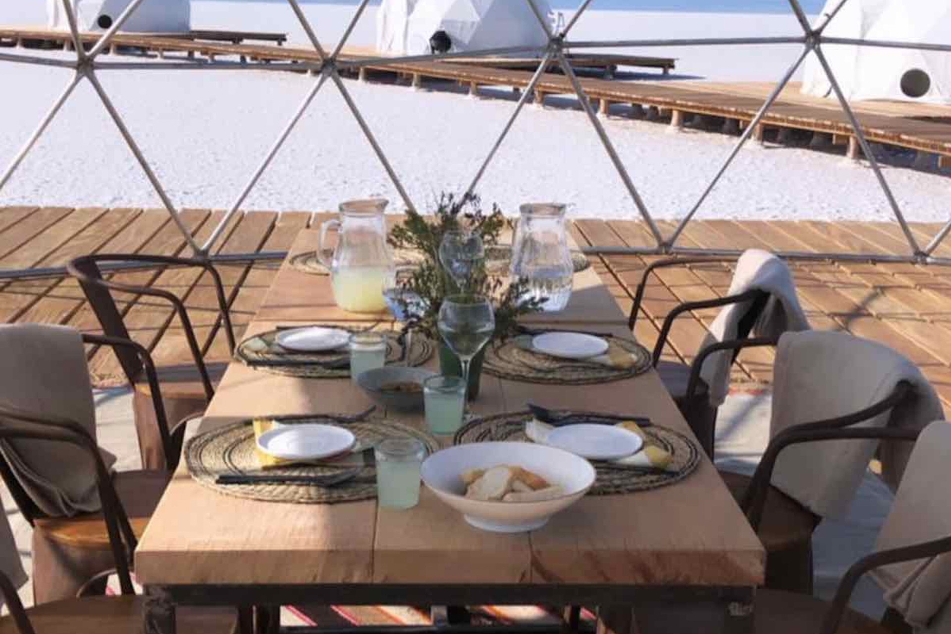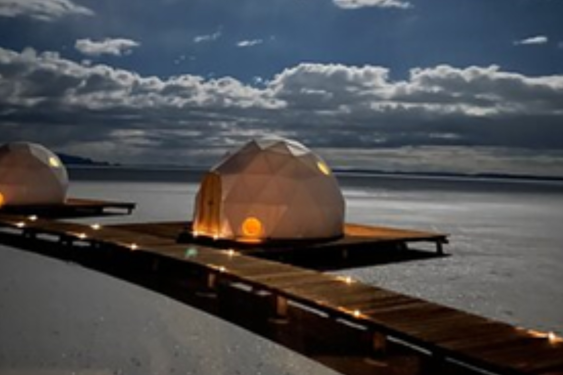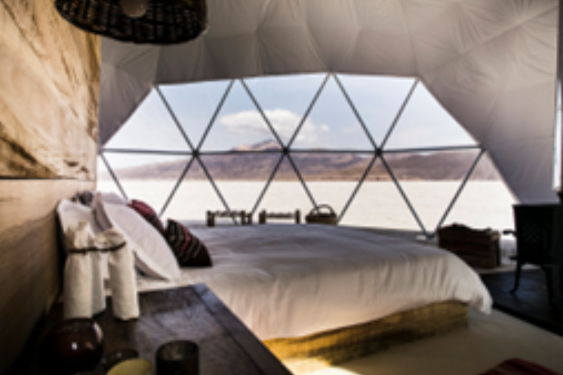 As cúpulas geométricas oferecem um painel transparente para vistas incomparáveis das Salinas, da Ilha Cactus, do Vulcão Tunupa, bem como do céu nocturno repleto de estrelas. O design interior inspira-se na natureza circundante, bem como nas cores e tradições locais. Consiste em 6 cúpulas glamping e uma enorme cúpula lounge, todas sobre um deck de madeira. Cada cúpula glamping é um quarto privado de 100 metros quadrados com banheiro privativo, água quente corrente e um interior luxuoso com todos os detalhes.